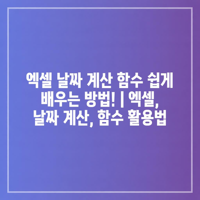 엑셀에서 날짜 계산은 업무 효율성을 높이는 중요한 스킬입니다.