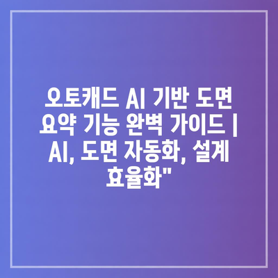 오토캐드 AI 기반 도면 요약 기능 완벽 가이드 | AI, 도면 자동화, 설계 효율화
