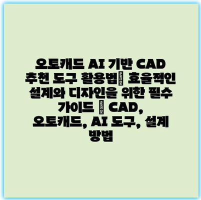 오토캐드 AI 기반 CAD 추천 도구 활용법| 효율적인 설계와 디자인을 위한 필수 가이드 | CAD, 오토캐드, AI 도구, 설계 방법에 대해 알아보겠습니다.