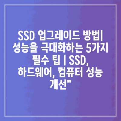 SSD 업그레이드 방법| 성능을 극대화하는 5가지 필수 팁 | SSD, 하드웨어, 컴퓨터 성능 개선