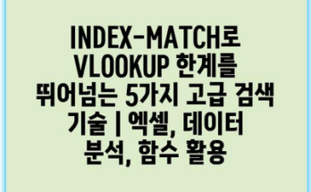 INDEX-MATCH로 VLOOKUP 한계를 뛰어넘는 5가지 고급 검색 기술 | 엑셀, 데이터 분석, 함수 활용 엑셀에서 데이터 검색을 할 때 많은 사람들이 흔히 사용하는 함수인 VLOOKUP은 유용하지만 몇 가지 한계가 있습니다. …